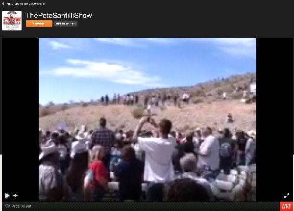 Pete Santilli is reporting that the Clark County Sherriff has not made the deadline issued by Clive Bundy at the stand-off with BLM in Nevada. Almost 115,000 listeners are currently following the live broadcast from the Clark County, Nevada peaceful action. Santilli's 911 call requesting a Sheriff can be heard below: ![]() Clive Bundy announced the passing of the deadline and a commitment was made to proceed. That statement can be heard below: The family and their supporters are currently on the move to release the Bundy cattle back into their decades old grazing land. Santilli is reporting the Interstate will be shut down. And there ya go. I will try to share clips of his live stream on Ustream to get this info out. Go Pete, and everyone there. The road will be blocked with people and horses in a peaceful manner. Santilli reports that BLM is supposed to be standing down, so far that seems to be the case. Santilli is reporting everything is safe and peaceful. Things are calm. They need to remain that way, and I know they can. Updates to this page will be ongoing as the situation unfolds. ![]() ![]() "They're sending everybody." Audio can be heard below: Listen Live Here |