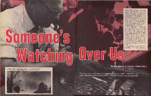 | Since January 1950, when TRUE published my first article on UFO's (see page 6), there has been a tremendous change in the public attitude toward Unidentified Flying Objects. Before, the "flying saucers" were ridiculed by most Americans. Only a small number knew the dramatic evidence - confirmed reports by veteran pilots and other competent witnesses. Even fewer knew of the Air Force Top Secret Estimate of the Situation - that the Flying Saucers - officially Unidentified Flying Objects - were interplanetary vehicles engaged in a long observation of the earth. Today, according to national polls, half of our population is convinced that the UFO's are real (see page 52). Over five million people claim to have seen strange flying objects. Some newly convinced Americans, reluctant to believe we are being observed by a technically superior race, first ask if the UFO's aren't highly secret devices - American or Russian. But the massive documented evidence of tremendous speeds and maneuvers far beyond any earthmade craft has proved this answer impossible. More and more millions now accept the long-hidden AF explanation: The UFO's are interplanetary probes from another world. This great switch in public belief did not come about quickly. The January 1950 TRUE article put the first strong spotlight on UFO's, and hundreds of witnesses reported sightings they had withheld for fear of ridicule. In 1952, a sudden outbreak of UFO sightings made front-page news, with hundreds of verified reports by military and airline pilots, control tower operators, expert radar trackers, and other reliable observers. Early in 1953, one group of AF Intelligence officers connected with the UFO project planned to release their most baffling cases, also unexplained photographs of UFO's. No final conclusion was to be stated, though the released evidence would strongly point to the interplanetary answer. But at the last moment, fears of high-level officials caused the plan to be killed. Withholding of UFO reports and "explanations" to prevent public excitement steadily increased. Despite this, many military reports leaked out because the pilots and others involved opposed this cover-up as a bad policy. In addition to UFO operations over the United States, thousands of similar reports came to light in foreign countries. In November 1957, another outbreak of sightings further strained official withholding efforts, as a number of "touchdown" landings occurred in this country and abroad. That same year, investigations were begun by NICAP - the National Investigations Committee On Aerial Phenomena - a private fact-finding group with headquarters in Washington D.C. As Director of NICAP, I have seen it grow to a powerful organization, recognized as the largest scientific UFO research group in the world, with over 12,000 members. NICAP has nearly 300 scientific and technical advisers and special consultants on space operations, astronomy, communications, and other fields bearing on UFO investigations. Because of its serious and thorough evaluations, and its determined efforts to expose the numerous frauds, opportunists, and deluded persons spreading wild tales about UFO's, NICAP is now accepted as the highest private UFO authority in the world. Our documented reports to Congress and the press have played a major part in making hidden facts public. After the "marsh gas" fiasco in the spring of 1966, millions of citizens began to reject the AF UFO explanations. High officials, still honestly believing that explaining away the sightings was the safest policy for the country, were caught in an unenviable spot. The result was a decision to have an independent scientific investigation made - with officials agreeing to a "hands off" policy. The University of Colorado was selected, and a number of recent sightings has already had on-the-scene investigations by one or more scientists from the Colorado project. Even before the project began operations, NICAP played a vital part, at the request of Dr. Edward Condon, the project head, and his scientific colleagues. In addition to advice on field investigations and evaluations, NICAP has made available several hundred verified reports, including many duplications of cases in AF files. As a result, the Colorado Project has added to NICAP hopes for a fair and impartial report to the public. Although this is not due until late spring of 1968 - and more time may be requested - public pressure for all possible answers is rapidly increasing. With at least half the country now strongly interested, it is now more important than ever to re-examine the strongest earlier cases, to search for possibly overlooked clues. It is also extremely important that witnesses to sightings put their reports on record, to help complete the picture and also to help the already lessening ridicule. I urge everyone with factual UFO sighting information to report the details to me at NICAP, 1536 Connecticut Avenue, Washington, D.C. 20036. If you wish, we shall keep your name confidential. |