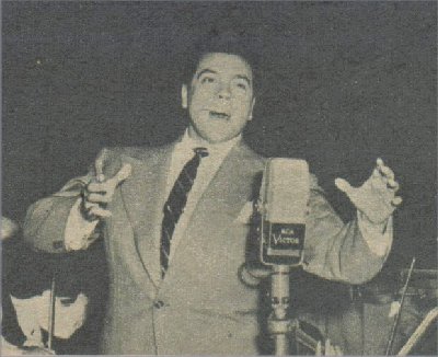Radio show on NBC, with Ray Sinatra as bandleader, upped Lanza's expected take for 1951 to more than $750,000. As usual when he sings for concerts, records, radio or film sound-tracks (post-synchronized), he put on weight,. Gossips hinted he was feuding with Metro, deliberately making himself unphotogenic. |