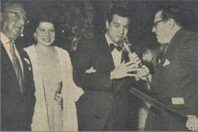 At Hollywood opening of The Great Caruso, the Lanzas were accompanied by Lasky, whose deal with Metro included own services as associate producer. And film was off on its record-breaking career, including new high of $1,5000,000 at Radio City Music Hall in N. Y. |